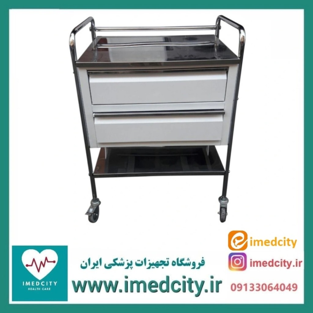 ترالی پانسمان دو کشو پزشک آرا با رویه استیل
