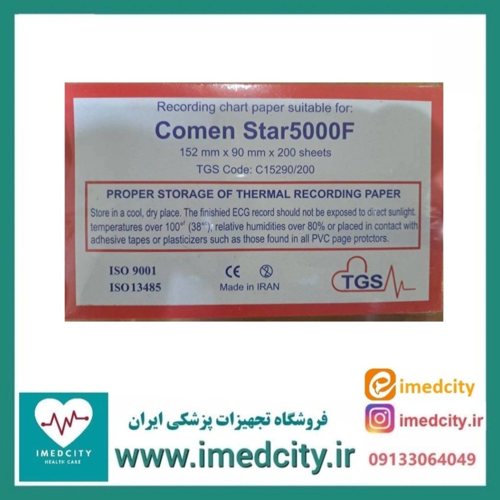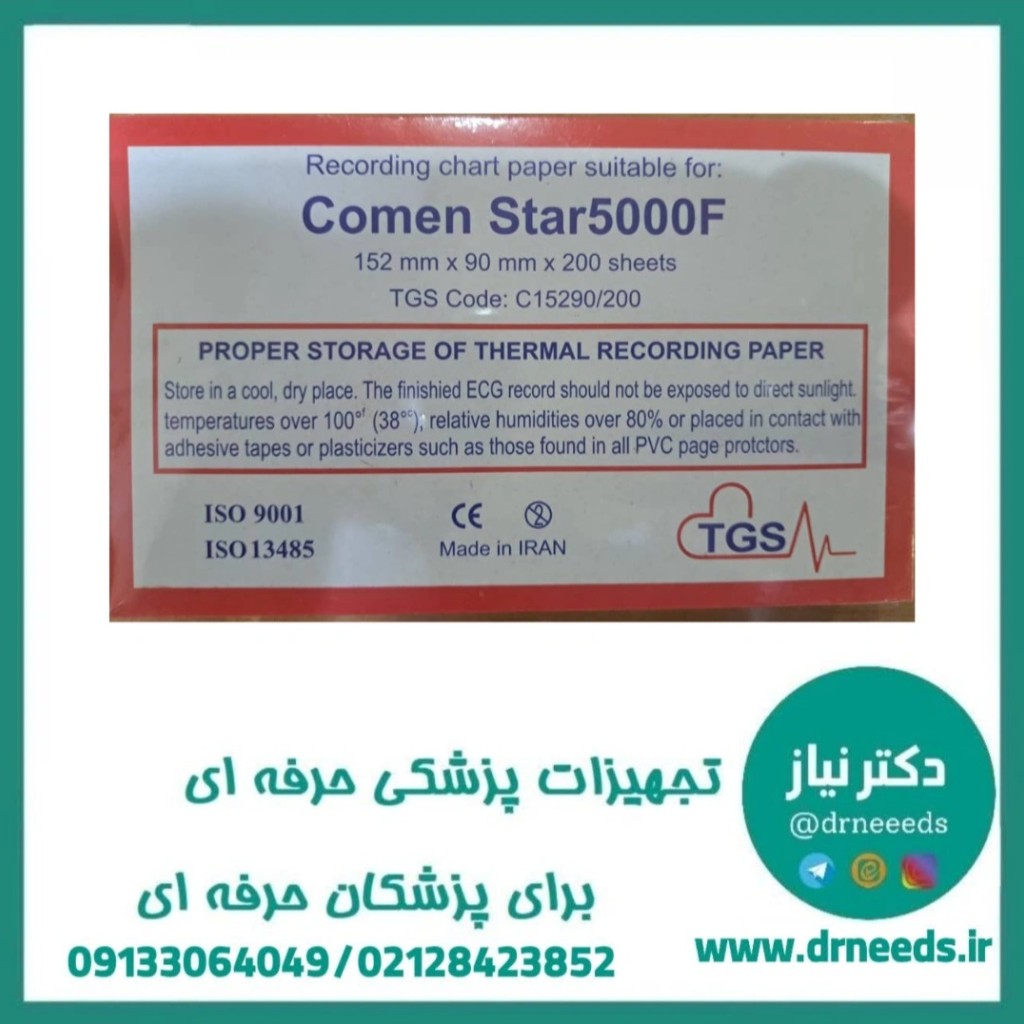 کاغذ ECG کتابی برند TGS با ابعاد ۱۵۲×۹۰ میلیمتر طراحی شده تا دادههای قلبی با وضوح بالا و دقیق ثبت شوند. این محصول مناسب استفاده در دستگاههای Comen Star5000F است و با کیفیت چاپ یکنواخت، گزینهای قابل اعتماد برای مراکز درمانی و تشخیصی به شمار میرود.