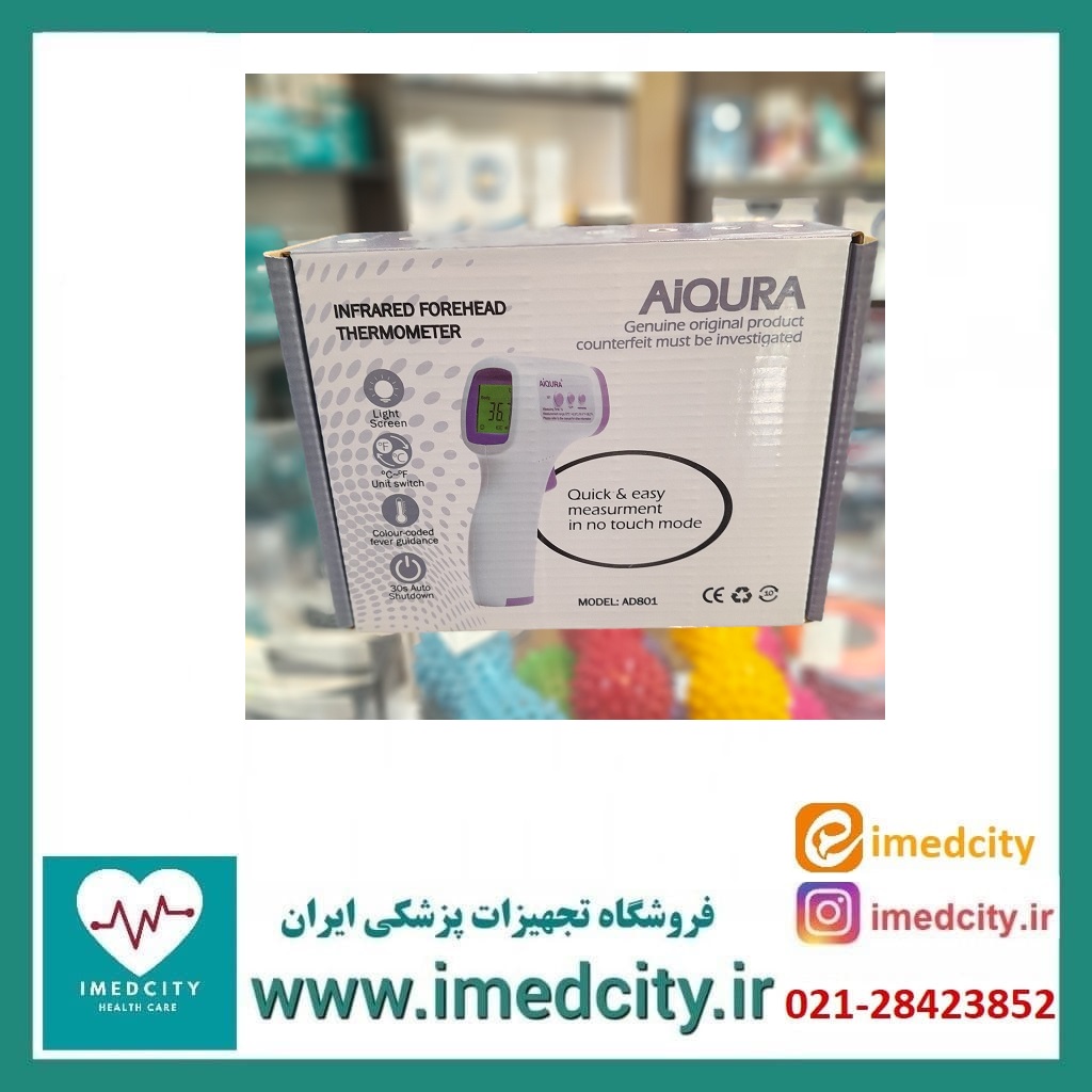 AIQURA یک دماسنج غیر تماسی است که با استفاده از امواج مادون قرمز، دمای بدن انسان را اندازه گیری می کند. هنگام استفاده فقط لازم است که دستگاه را روبروی پیشانی قرار دهید تا دمای بدن به سرعت و با دقت اندازه گیری شود و علاوه بر نمایش سریع دما در صورت بالا بودن دمای بدن رنگ پس زمینه نیز قرمز خواهد شد و دستگاه هشدار صوتی خواهد داد. محصولات زیادی در بازار وجود دارند که با الگوبرداری از تب سنج AIQURA ساخته شده اند. هر جسم با دمای بالاتر از صفر مطلق طول موج مادون قرمز منتشر می کند و مطابق این اصل، می توان با انتخاب حالت اندازه گیری مناسب دستگاه، دمای بدن انسان را از پیشانی یا به همین ترتیب دمای اجسام تعیین کرد.