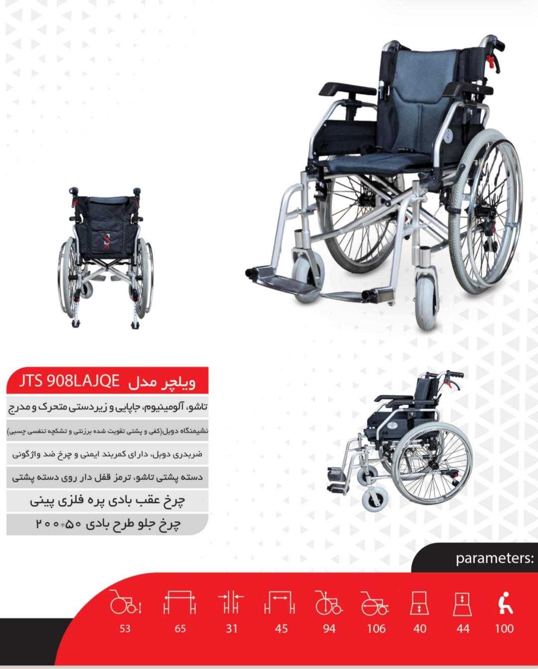 از سری ویلچرهای حرفهای و سبکوزن برند JTS است که برای افراد دارای معلولیت حرکتی، آسیب نخاعی، سالمندان و بیماران پس از عملهای ارتوپدی طراحی شده است.