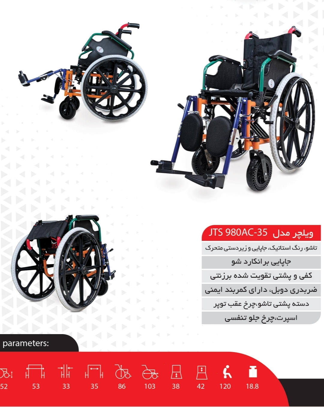 ویلچر ارتوپدی JTS مدل 980AC-35 یکی از مدلهای محبوب و کاربردی برند جیتیاس است که برای استفادههای روزمره، مراکز درمانی و مصارف خانگی طراحی شده است.