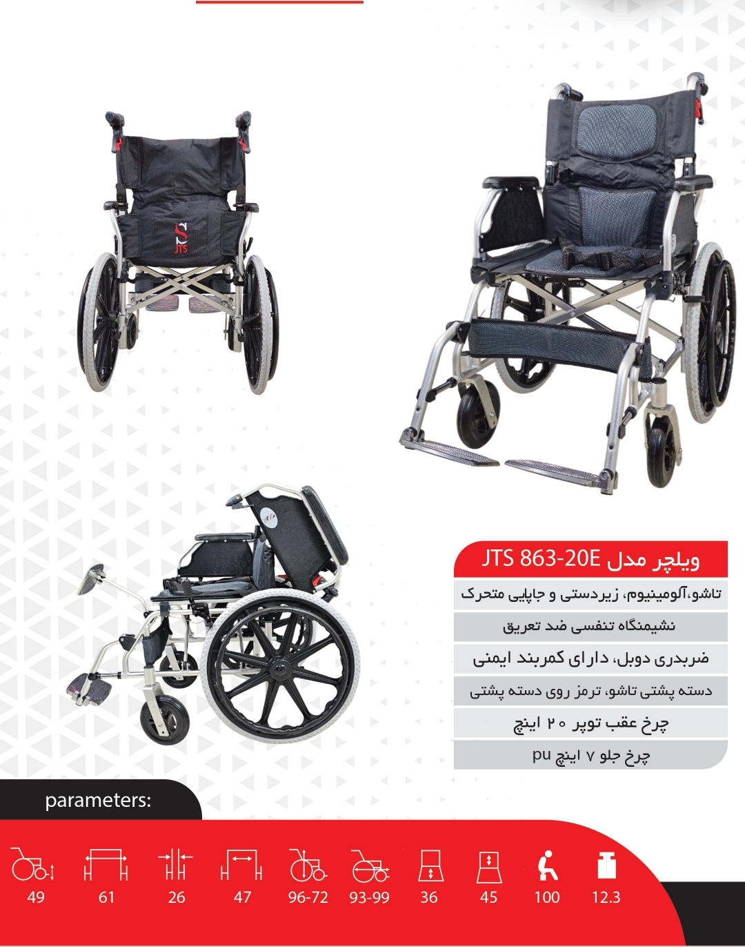 ویلچر آلومینیومی JTS مدل 863-20E