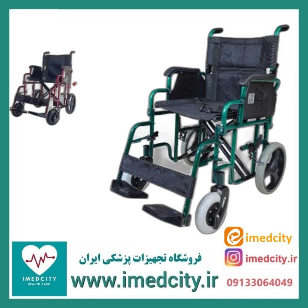 پشتی این مدل به صورت شکن از وسط خم میشود تا فضای اشغالی هنگام حمل، به حداقل برسد. زیر دستی متحرک و طراحی ارتوپدی جاپایی (ABS درجه یک) امکان نشستن راحتتر بیمار را فراهم میکند.