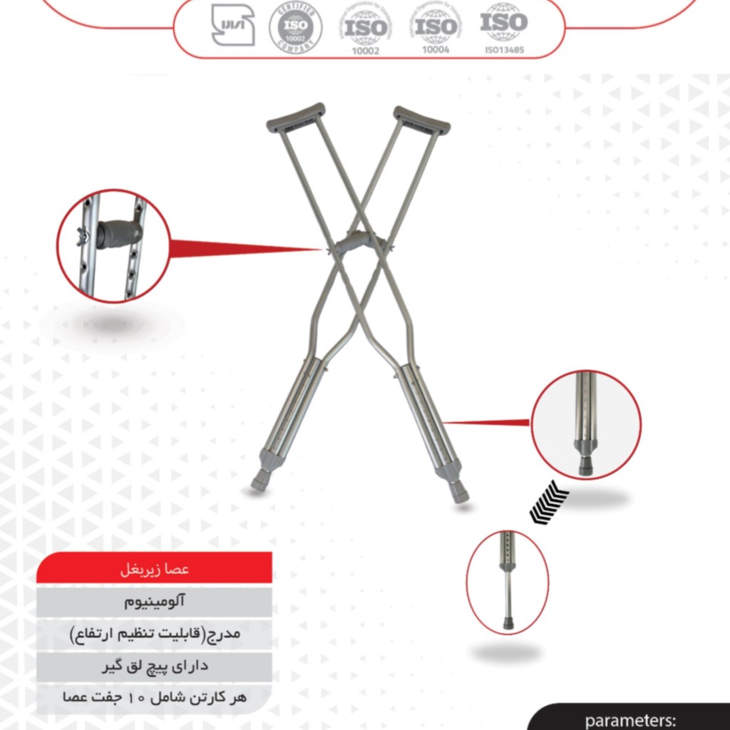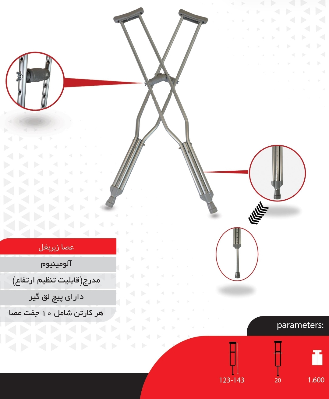 یک وسیله کمکی حرفهای برای افرادی است که در روند توانبخشی یا حین راه رفتن نیاز به حمایت بیشتری دارند. این عصا با بدنه آلومینیومی سبک، ارتفاع قابل تنظیم و دسته نرم زیر بغل، راحتی و امنیت بیشتری را برای کاربر فراهم میکند.