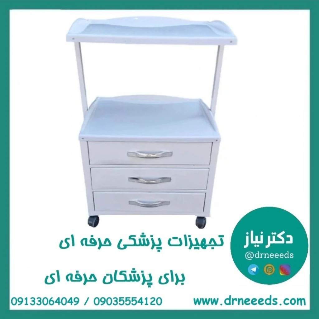 ترالی زیبایی سه کشو کوچک ABS پزشک آرا سبک و مقاوم