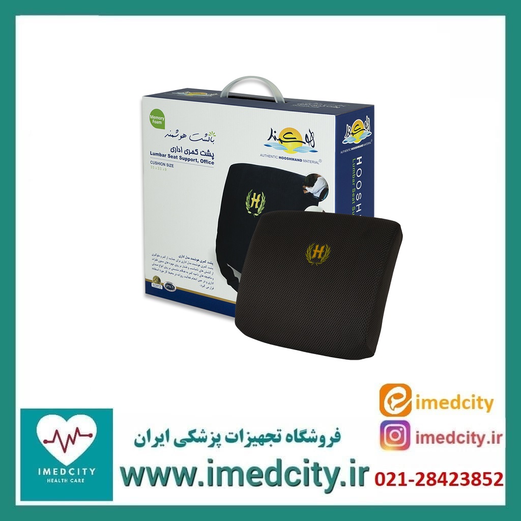 «پشت کمری اداری» ساخت شرکت «هوشمند» (Hooshmand) از فوم هوشمند یا مموری فوم ساخته شده و برای پرکردن گودی کمر و اصلاح وضعیت نشستن در محیط کار استفاده میشود. صندلیهای مورداستفاده در محیطهای کار عموماً گودی کمر را پر نمیکنند. این امر باعث میشود که فشار وزن بالاتنه روی مهرههای پایین کمر بیفتد و باعث درد و ناراحتی شود. ازطرفی شخصی که در حال کارکردن است، توجه کمتری به وضعیت نشستن خود میکند و ممکن است ناخودآگاه مدت زیادی در وضعیت ناصحیح قرار بگیرد. پشت کمری اداری هوشمند حالت خود را با شکل بدن تغییر میدهد و ستون فقرات را در یک راستا حفظ میکند. این پشت صندلی از فوم هوشمند یا مموری فوم ساخته شده است. هنگامیکه وزن بالاتنه روی فوم هوشمند قرار میگیرد، شروع به تغییر حالت دادن میکند و شکل بالاتنه را به خود میگیرد. فوم هوشمند خاصیت انعطافپذیری خاصی دارد. اگر وزن بالاتنه از روی فوم هوشمند برداشته شود، با مقداری تأخیر به حالت اولیهی خود برمیگردد. همین امر باعث راحتی فوقالعاده محصولات ساختهشده از فوم هوشمند است. روکش پشت صندلی 80درصد کتان بوده و قابل تعویض و شستوشو است. این روکش ضمن نرمی و لطافت زیاد، با جذب رطوبت بدن، از خیسشدن و عرقکردن بیشازحد کمر جلوگیری میکند. طول و عرض پشت کمری 34 و 33 سانتیمتر و پهنای آن 9 سانتیمتر است. بهطورخلاصه پشت کمری هوشمند با انحنایی که دارد گودی کمر را پر کرده و از ایجاد درد و ناراحتی جلوگیری میکند. علاوهبراین با تغییر شکل فوم داخلی، به صحیح نشستن شخص روی صندلی اداری کمک میکند.