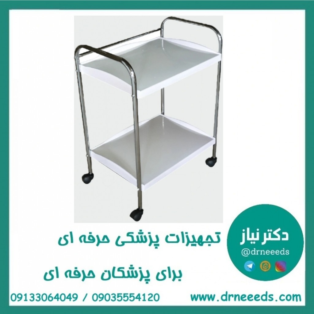 ترالی پانسمان دوطبقه رویه ABS در دو مدل رنگی عالی عرضه میشود. اولین مدل با رنگی که به تمیزی و شفافیت معروف است و مدل دیگر با رنگ آبکاری شده، یک پوشش براق و زیبا دارد که به مطب شما جلال و جذابیت میبخشد.